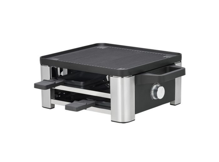 Haluaisitko viettää mukavan illan perheen kanssa tai nauttia illallisen kahden kesken ilman että sinun pitää itse olla tuntikausia keittiössä, vaan voisit valmistaa ruoan yhdessä vieraiden kanssa? WMF:n Lono-raclettegrilli 4 hengelle takaa aina sekä herkullisen että viihtyisän ruokailuelämyksen. Käännettävällä grillauslevyllä, jossa on sekä tasainen että parilaraidat jättävä pinta, voit valmistaa joko lihaa, kalaa tai kasviksia samalla kun nautit perunoita tai herkkusieniä herkullisen raclette-juuston kanssa. 4 annospannussa, joissa esim. juusto sulatetaan, on tarttumaton pinnoite, joten ruoka ei tartu kiinni, ja kätevällä lastalla voit helposti annostella ruoan lautaselle. Grillissä on käytettyjen, lämpimien annospannujen säilytystila, jonne pannut voi asettaa hetkeksi sivuun. Tyylikäs muotoilu, runko laadukasta Cromargan®-terästä. Käännettävä grillauslevy, annospannut ja lastat ovat luonnollisesti konepesun kestäviä. Runko laadukasta Cromargan®-terästä. Lämpötilansäädin, jossa LED-valo.