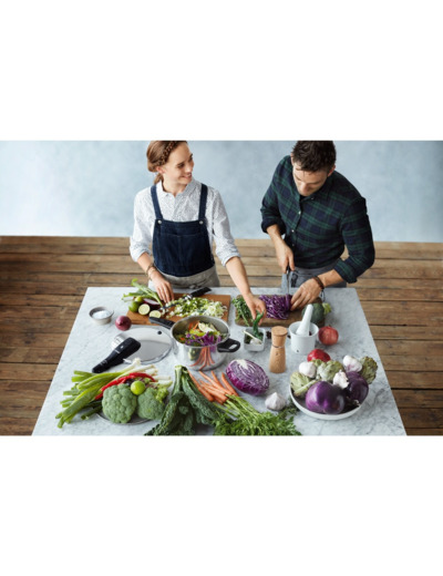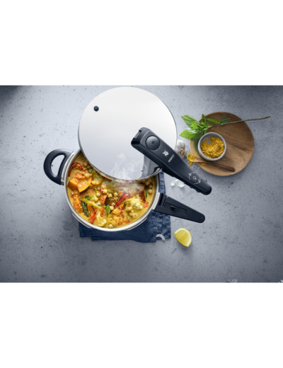 WMF Perfect: Täydellinen painekattila. Täydellinen lopputulos hetkessä! WMF:n Perfect-painekattilassa herkullinen mutta terveellinen ruoanlaitto on nopeaa ja helppoa ja tuloksena on monipuolisia aterioita, jotka ovat täynnä makua ja täynnä luonnollisia vitamiineja, ravintoaineita ja kivennäisaineita. Olipa kyse hauduttamisesta ja glaseerauksesta, sen kaksi helposti tarkkailtavaa kypsennystasoa tekevät kaiken täydellisen mureista vihanneksista, kalasta ja siipikarjasta meheviin lihoihin, perunoihin ja patoihin. Helppokäyttöisessä muotoilussa on sivulla liukupainikkeet vaivattomaan avaamiseen ja sulkemiseen, ja yhdellä napsautuksella irrotettava kahva varmistaa helpon puhdistuksen ja täydellisen hygienian. Perfect-painekattila on valmistettu upeasta, konepesunkestävästä Cromargan®-teräksestä ja on yhteensopiva kaikkien liesien kanssa. Se varmistaa ihanteellisen lämmönjakautumisen virheetöntä lopputulosta varten ja on varustettu monitasoisella turvajärjestelmällä täydellistä mielenrauhaa ajatellen. Siinä on myös sisäpuolella käytännöllinen mitta-asteikko, joka on hyödyllinen höyrytystarvike.