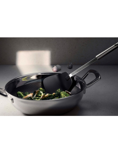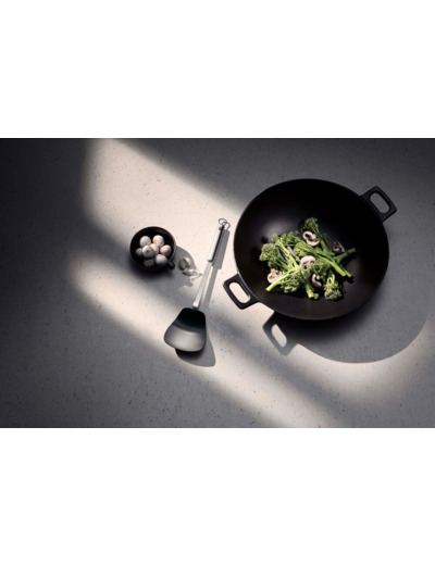 WMF tarjoaa arkeen ja juhlaan korkealaatuisia, toimivia ja kauniita tuotteita, jotka täyttävät korkeimmatkin design-vaatimukset! WMF Profi Plus -paistolastalla sekoitat ja käännät ruokaa nopeilla liikkeillä ja tarvittaessa nostat kätevästi myös ylös pannun reunoille, jos ainekset tuntuvat kuumenevan liikaa. Lasta soveltuu kaikkeen paistamiseen, mutta erityisen hyvä apu se on wokkaamisessa. Wok-kypsennyksen idea on paistaa raaka-aineet melko kuumassa lämpötilassa nopeasti käännellen. WMF Profi Plus -paistolasta kestää korkeita lämpötiloja, jopa 270 °C. Lastaosa on korkealaatuista muovia, eikä se näin ollen vaurioita paistinpannun pintaa nopeatempoisessakaan ruoanlaitossa. Ruostumattomasta Cromargan®-teräksestä valmistetusta kädensijasta saa tukevan otteen. Pituus 35 cm. WMF Profi Plus -sarja on valikoima yhteensopivia, käytännöllisiä keittiövälineitä ruoanvalmistukseen. Kaikki Profi Plus -keittiövälineet ovat erittäin laadukkaita ja kestävät päivittäistä käyttöä. Keittiövälineet voidaan luonnollisesti pestä myös astianpesukoneessa, joten niiden puhdistus on helppoa. Kaikissa keittiövälineissä on pieni ruostumaton teräksinen ripustuskoukku ripustamista varten, jotta ne ovat aina käden ulottuvilla, kun tarvitset niitä. Kun tuotteen valmistusmateriaalin pitää olla korkealaatuista, kestävää ja kiiltonsa vuodesta toiseen säilyttävää, on luonnollinen valinta WMF:n ruostumaton Cromargan® 18/10 -teräs. Cromargan® on rekisteröity tavaramerkki, joka varmistaa sen, että WMF:n Cromargan®-teräs eroaa muusta ruostumattomasta teräksestä. Sen valmistusprosessit ovat tehokkaat ja korkealaatuiset. Cromargan®-teräksen laatua valvotaan tarkasti ja säännöllisesti, jolloin siitä valmistetut tuotteet täyttävät jatkuvasti niille asetetut vaatimukset. Lisäksi Cromargan®-teräs on erittäin kestävää naarmuuntumista ja kulumista vastaan sekä täysin ruosteenkestävää. Se ei kerää lainkaan makuja ja kestää myös ruoan happoja. Cromargan®-teräs valmistetaan Saksassa. WMF on yksi maailman johtavista ruostumattomien terästuotteiden valmistajista ja se on tuottanut vuodesta 1853 lähtien korkealaatuisia ja käteviä keittiö- ja kodintarviketuotteita. WMF on voittanut monia kansainvälisiä muotoilupalkintoja sekä tuotesuunnittelusta että toimivuudesta, erityisesti paistinpannuihin, kattiloihin ja Cromargan®-teräksen valmistukseen liittyen. Valikoimaan kuuluu keitto- ja paistoastioiden, veitsien ja aterimien lisäksi myös erilaisia sähköisiä kodinkoneita. Erinomainen non-stick-pinnoitetuille paistoastioille, ei naarmuta Lämmönkestävä jopa 260°C