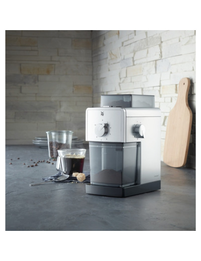 Takuutuoretta ja aromikasta. Kun kahvi säilytetään kotona papuina ja jauhetaan varta vasten jokaiselle kupilliselle erikseen juuri ennen suodatusta, jää kahvijauheeseen moninkertainen määrä makuun vaikuttavia ainesosia verrattuna valmiiksi jauhettuun, avattuun kahvipakettiin. Kahvi on takuulla tuoretta. Siksi vastajauhetuista kahvipavuista syntyy aromikkain kahvijuoma. Sitä paitsi, kun kahvin valmistaminen aloitetaan pavuista, voit hankkia ja sekoittaa eri maiden kahveja sekä eri paahtoja keskenään. Näin kahvihetkiin saa enemmän vaihtelua. 17 jauhatusastetta eri kahveille. WMF Stelio -kahvimyllyssä on 17 jauhatusastetta kahvin eri valmistustapoja varten, hienosta espresso- ja suodatinjauhatuksesta karkeaan pressopannujauhatukseen. Esimerkiksi espresson valmistusprosessi on erittäin lyhyt, noin 25 sekuntia ja tässä ajassa pieneen vesimäärään on tarkoitus uuttaa kahvijauheesta mahdollisimman paljon makua. Nyrkkisääntö tässä on, että mitä lyhyemmän aikaa kahvijauhe on kosketuksissa kuuman veden kanssa, sitä hienompaa sen tulee olla. Toki kahvin maku ja voimakkuus ovat henkilökohtaisia makuasioita. Kokeile siksi, millaisista kahvipavuista, jauhemäärästä ja jauhatusasteesta pidät eniten. Laadukkaat kartioterät. Joissain kilpailevissa kahvimyllyissä on sauvasekoittimen terää muistuttava silppuava terä, mikä tuottaa karkeudeltaan epätasaisen kahvijauheen. WMF Stelio -kahvimylly eroaa tässä niistä. Sen kartioterät ovat takuu laadukkaasta ja tasaisesta jauhatuksesta. Teho: 110 W. Jauhaa pavut 2 - 10 kupilliselle kahvia. 17 eri jauhatusastetta kahvin eri valmistustavoille. Papusäiliön tilavuus 180 g. Kartioterät leikkaavat pavut tarkemmin ja hienommiksi. Irrotettava jauhesäiliö. Automaattinen virrankatkaisu. Soveltuu ainoastaan kahvipapujen jauhamiseen. Runko korkealaatuista Cromargan® 18/10 -terästä. Mitat (LxSxK): 18 x 13 x 23 cm. Paino: 1,45 kg. Johdon pituus: 1,1 m. Kun tuotteen valmistusmateriaalin pitää olla korkealaatuista, kestävää ja kiiltonsa vuodesta toiseen säilyttävää, on luonnollinen valinta WMF:n ruostumaton Cromargan® 18/10 -teräs. Cromargan® on rekisteröity tavaramerkki, joka varmistaa sen, että WMF:n Cromargan®-teräs eroaa muusta ruostumattomasta teräksestä. Sen valmistusprosessit ovat tehokkaat ja korkealaatuiset. Cromargan®-teräksen laatua valvotaan tarkasti ja säännöllisesti, jolloin siitä valmistetut tuotteet täyttävät jatkuvasti niille asetetut vaatimukset. Lisäksi Cromargan®-teräs on erittäin kestävää naarmuuntumista ja kulumista vastaan sekä täysin ruosteenkestävää. Se ei kerää lainkaan makuja ja kestää myös ruoan happoja. Cromargan®-teräs valmistetaan Saksassa. WMF on yksi maailman johtavista ruostumattomien terästuotteiden valmistajista ja se on tuottanut vuodesta 1853 lähtien korkealaatuisia ja käteviä keittiö- ja kodintarviketuotteita. WMF on voittanut monia kansainvälisiä muotoilupalkintoja sekä tuotesuunnittelusta että toimivuudesta, erityisesti paistinpannuihin, kattiloihin ja Cromargan®-teräksen valmistukseen liittyen. Valikoimaan kuuluu keitto- ja paistoastioiden, veitsien ja aterimien lisäksi myös erilaisia sähköisiä kodinkoneita. 17 jauhatusastetta eri kahvijuomille Kartioterät ovat takuu laadukkaasta ja tasaisesta jauhatuksesta