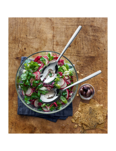 Huolella valmistettu salaatti! Tavernolla pääsevät vitamiinit oikeuksiinsa. Tyylipuhtaan, läpinäkyvän aromi- ja makuneutraalin lasikulhon ansiosta salaatti saa pääosan. Sarjaa on täydennetty kiillotetulla Cromargan® ruostumattomasta teräksestä 18/10 valmistetuilla ruokailuvälineillä, jotka säilyttävät muotonsa ja suojaavat ruokahapoilta. Sarja on saatavissa kahdenkokoisena, voidaan pestä astianpesukoneessa, ja ajaton malli sopii jokaiseen keittiöön. Cromargan ruostumaton teräs 18/10 - helppo puhdistaa, ei jätä makua, haponkestävä. Kestää astianpesukoneen