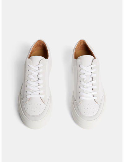 Our Art Signature Leather Sneaker is crafted in supremely soft calf leather. It features a perforated toe and mesh lining for maximum comfort and breathability. Designed in a classic low-top style, its flat cotton laces infuse a clean and polished look, while its rubber sole provides supreme grip. The iconic Bridge logo is debossed at the heel for an extra dose of style. Pair this timeless sneaker with everything from shorts to tailored trousers for a look that’s perfect for any occasion. Size range: 40-46 Flat cotton laces Debossed JL Bridge logo on the heel Perforated at toe Made in Portugal