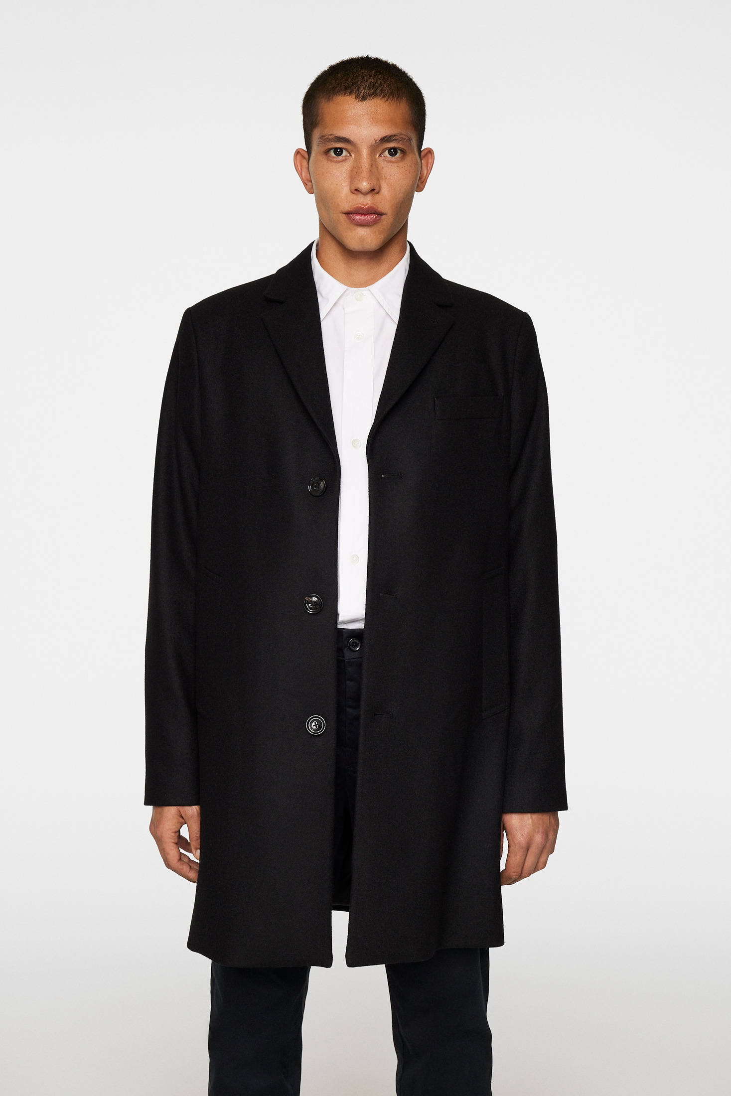 Exude classic elegance in our timeless Artie Melton Single-Breasted Coat, crafted from a luxurious recycled wool mix of Italian fabric. It features a sophisticated collar and reveres for a refined touch. The button closure at the center front and the fully lined interior ensure warmth and style. Regular fit Fully lined Two hand pockets One inner pocket