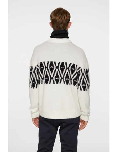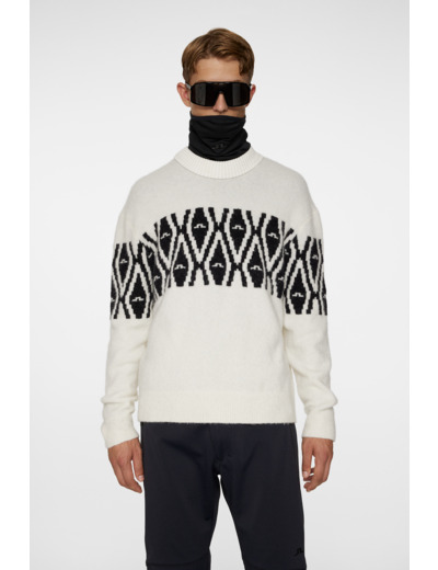 The Jalen Knitted Sweater marks our first venture into unisex knitwear, offering versatility and style for all. Crafted from cozy alpaca yarn, it's ideal for post-slope activities or chilly days in town. Its chunky knitted collar in cotton adds a touch of texture, while the all-over jacquard knitted seasonal artwork lends a distinctive charm. Regular fit Unisex Chunky knitted collar in cotton Jacquard knitted panel with seasonal artwork featuring our Bridge logo Warming Soft