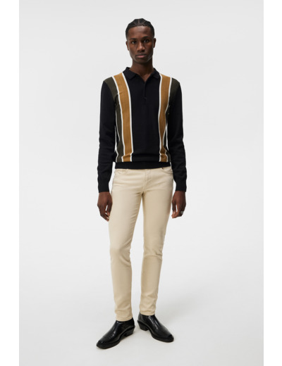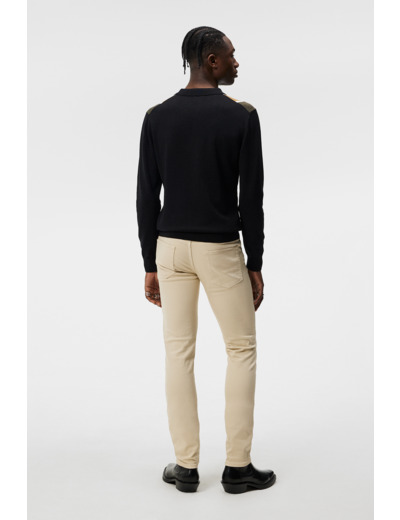 Crafted from eco-friendly BCI cotton twill that’s been garment dyed in neutral colors for the season, our Jay Solid Stretch Jeans provide a stylish alternative to denim. Classic styling cues include a zipper fly, riveted front pockets and a Jacron patch in back. Stretchy fabric provides the ultimate in comfort. Pair these jeans with our Lyd Merino Turtleneck sweater, throw on our Johah Suede Overshirt, and you’re out the door in this season’s perfect ensemble. Italian left-hand twill fabric Garment dyed Zip fly Riveted front pockets Bridge logo rivet on coin pocket Jacron patch at back Better Cotton