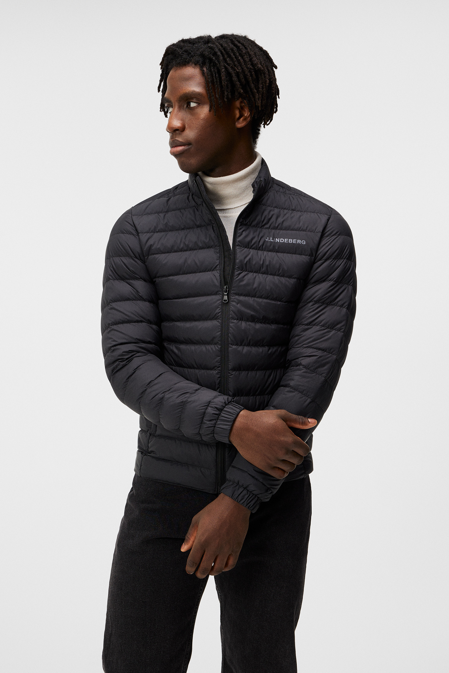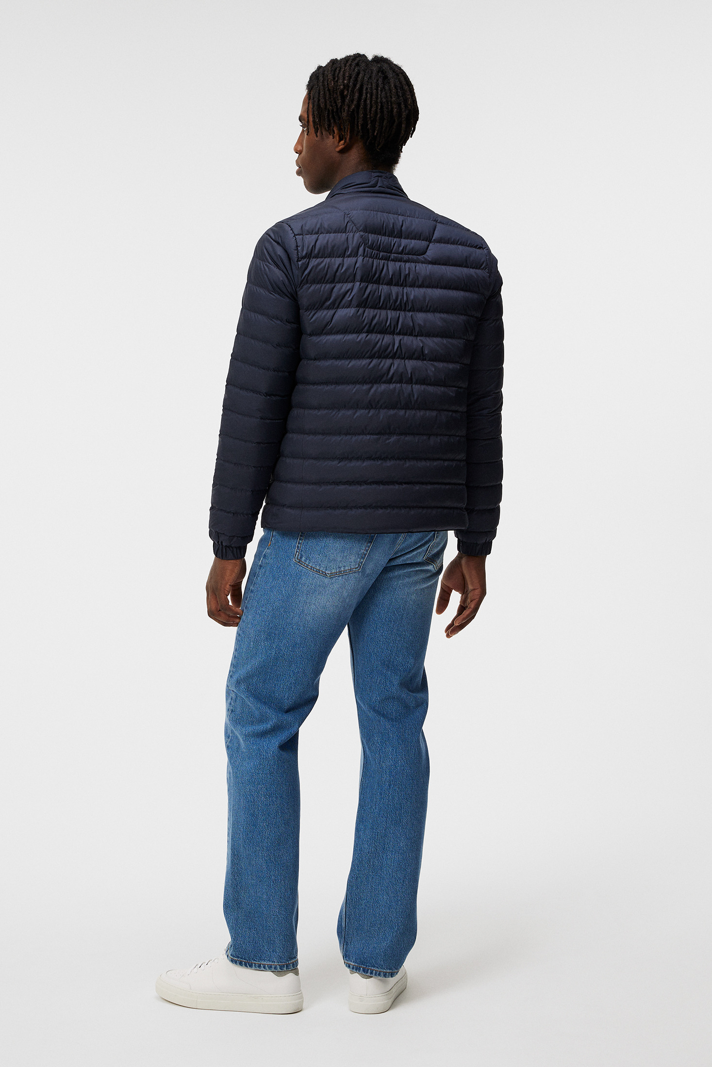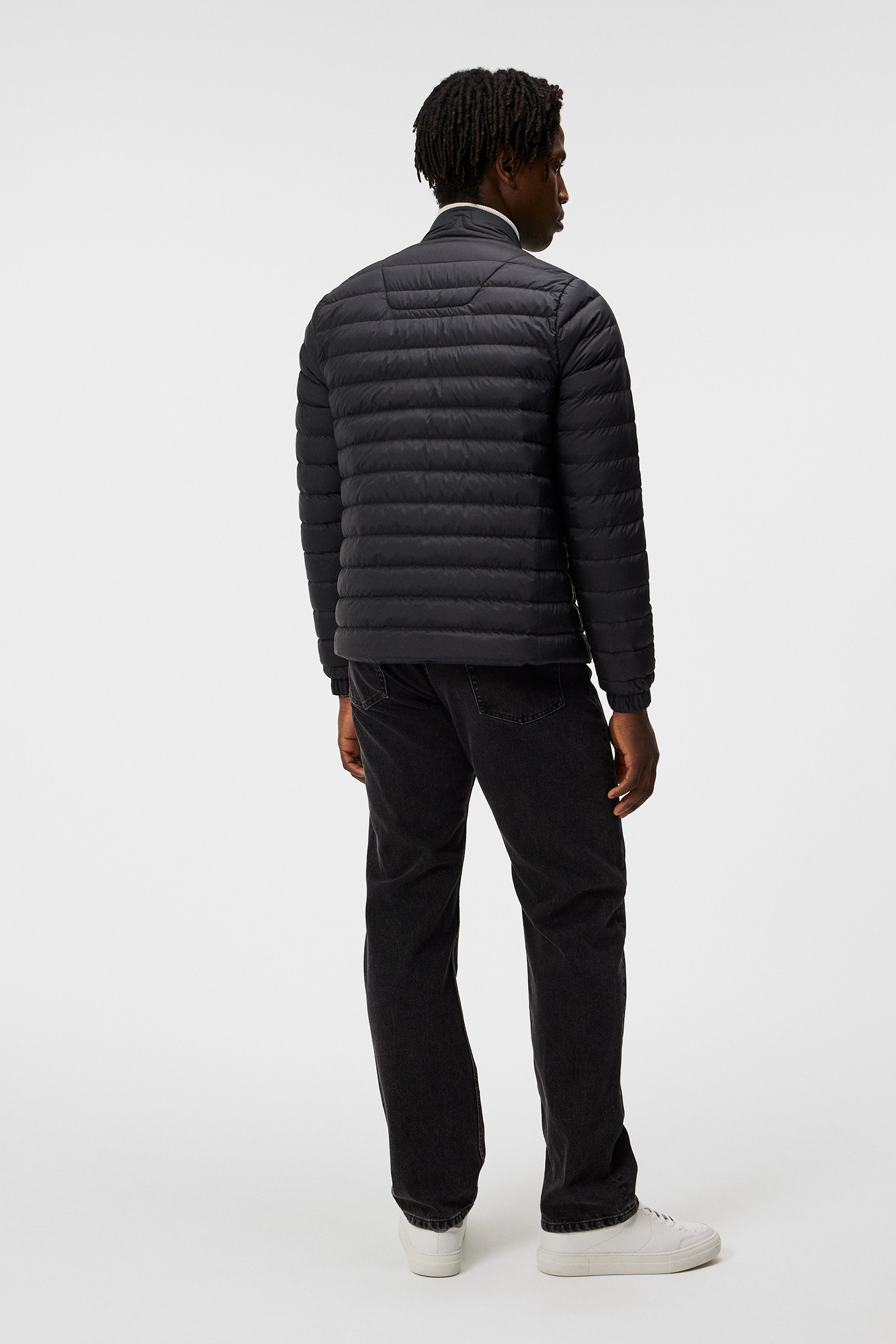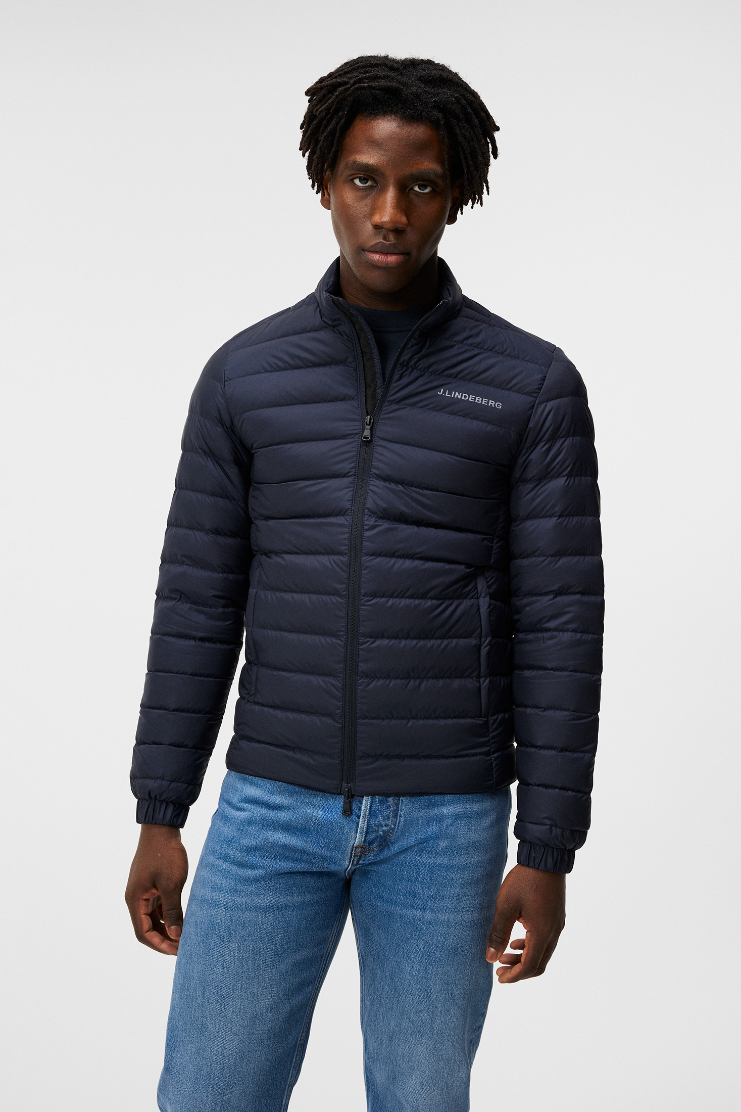Light weight PFC Free and water resistant treated fabric Semi glossy yoke Two hand pockets with zip Zip pockets at front Logo quilt detail at back collar Light weight PFC Free and water resistant treated fabric 2-way zip at front. Measurements: Center back length is 66 cm in size M