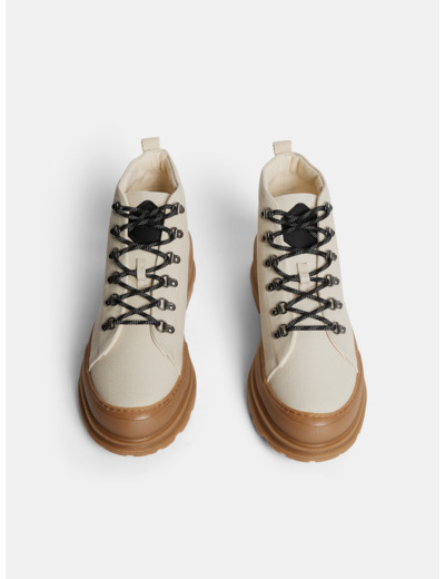 Introducing our desert army-inspired Roder Canvas Boot, designed for style and functionality. This boot features a sturdy cotton canvas upper, delivering durability and a distinctive look. Embracing a rugged aesthetic, it boasts hiking eyelets and a branded rubber patch on the tongue. The rounded laces ensure a secure fit and complement the overall design. Anchored by a chunky rubber sole that provides traction and comfort, it is a versatile choice for urban exploration or outdoor adventures. Size range: 40-46 Back Loop Waxed cotton laces Made in Portugal