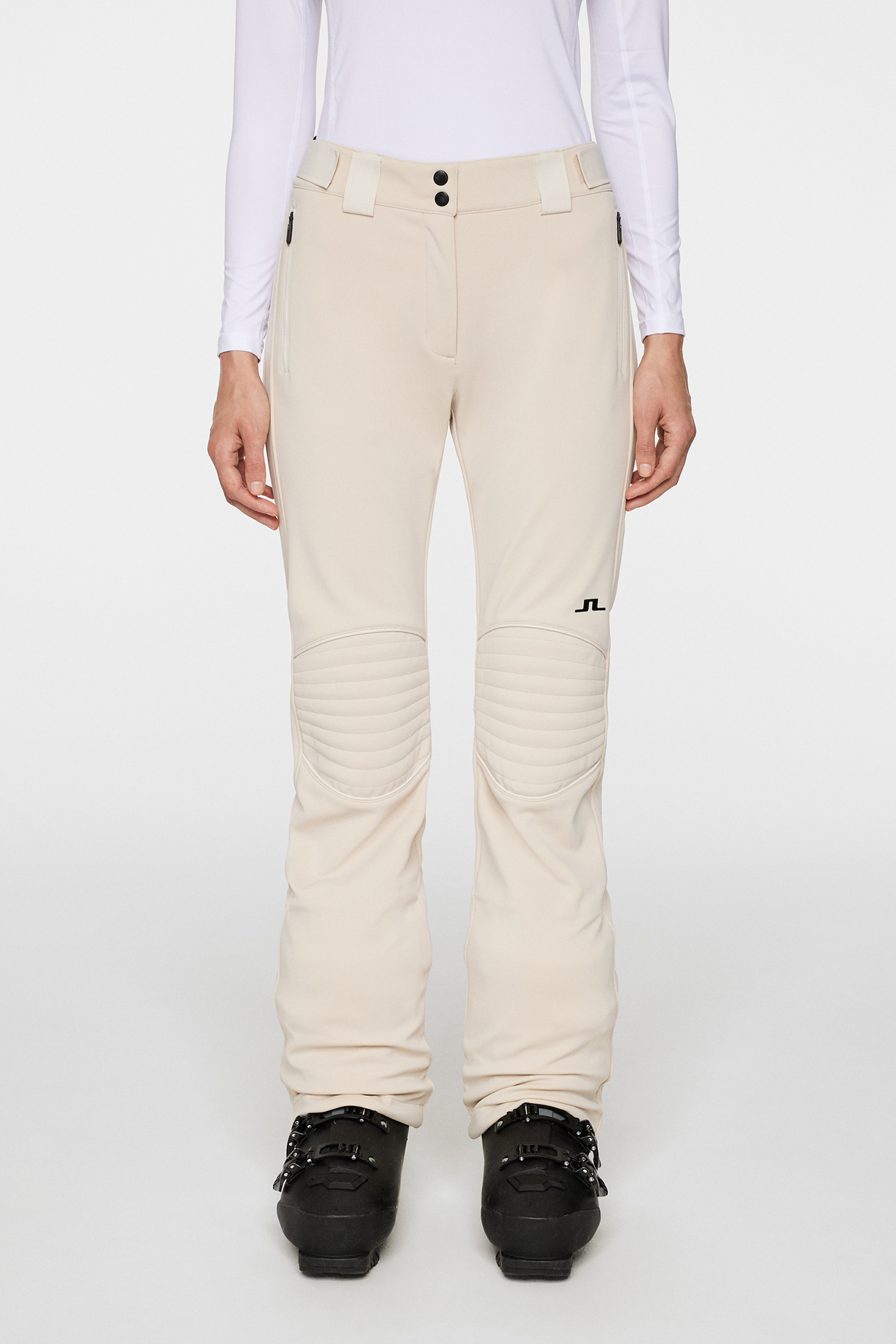 Enjoy the freedom of movement for all your skiing adventures in our renowned Stanford Ski Pants crafted from LX Softshell with a 4-way stretch. Designed for maximum comfort and functionality, they feature padded knees for added protection and durability, ideal for challenging terrains. With adjustable velcro straps at the waist and inside snow gaiters on the bottom legs, you can tailor the fit to your preference and keep the snow at bay. Emblazoned with the iconic JL Bridge logo on the leg and the JL script logo at the center back waistband, they exude signature style. Finished with a water-repellent coating and brushed fleece interior, providing unbeatable comfort and warmth. Regular fit Front zip fly with 2 snap buttons, hook and eye Inseam: 31 inches / 78.5 cm (Size S) JL bridge logo at leg JL logo at center back waist band Adjustable velcro straps at waist Inside snowgaiters at bottom leg Padded knees Zipped hand pockets Water repellent Brushed fleece inside 4 way stretch