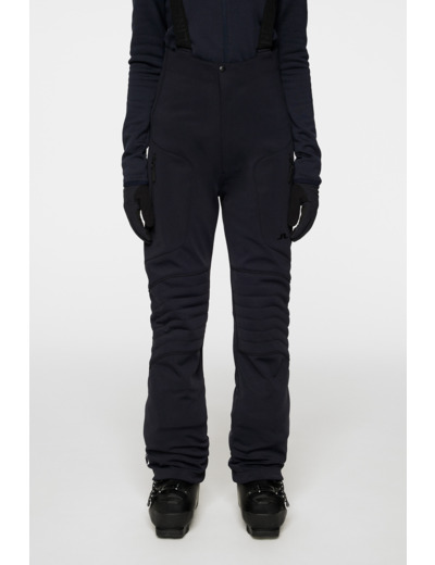 Introducing our versatile Stanford Pro Bib Pants inspired by our best-selling Stanford Pants, crafted in LX SOFTSHELL fabric. They feature padded knees for enhanced durability and protection, while the high-waisted design ensures a flattering silhouette. The addition of elastic snow gaiters at the bottom leg provides further defense against the elements, while ventilation zippers at the lower leg offer customizable airflow for optimal comfort. The iconic JL Bridge logo on the leg adds a touch of signature style. Slim fit Inseam: 30.9 inches / 78.5 cm (Size S) Adjustable elastic suspenders Zip fly with snap button closure Water repellent Brushed fleece inside 4 way stretch