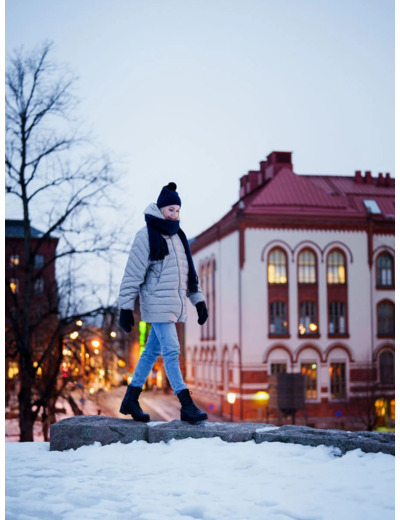 Orvokki-kevytuntuvatakin juttu ovat upeasti tikatut tilavat pussimaiset hihat. Hihansuissa on miellyttävät kuminauhakiristykset. Tämän takin alle paksumpi neule sujahtaa mukavasti. Kiinteä huppu on muotoiltu niin, että se asettuu alhaalla ollessaan kauniisti niskaan tai sen voi taitella suojaavaksi kaulukseksi. Takki on malliltaan suora, mutta yläosasta tilava. Helman saa pussimaiseksi kiristysnyörin avulla. Orvokissa on kaikki luottotakin ainekset, sillä se on mukava arjessa ja ulkoillessa, mutta näyttävien yksityiskohtiensa ansiosta sopii hyvin myös iltamenoihin ja osaksi juhlavampaa pukeutumista.