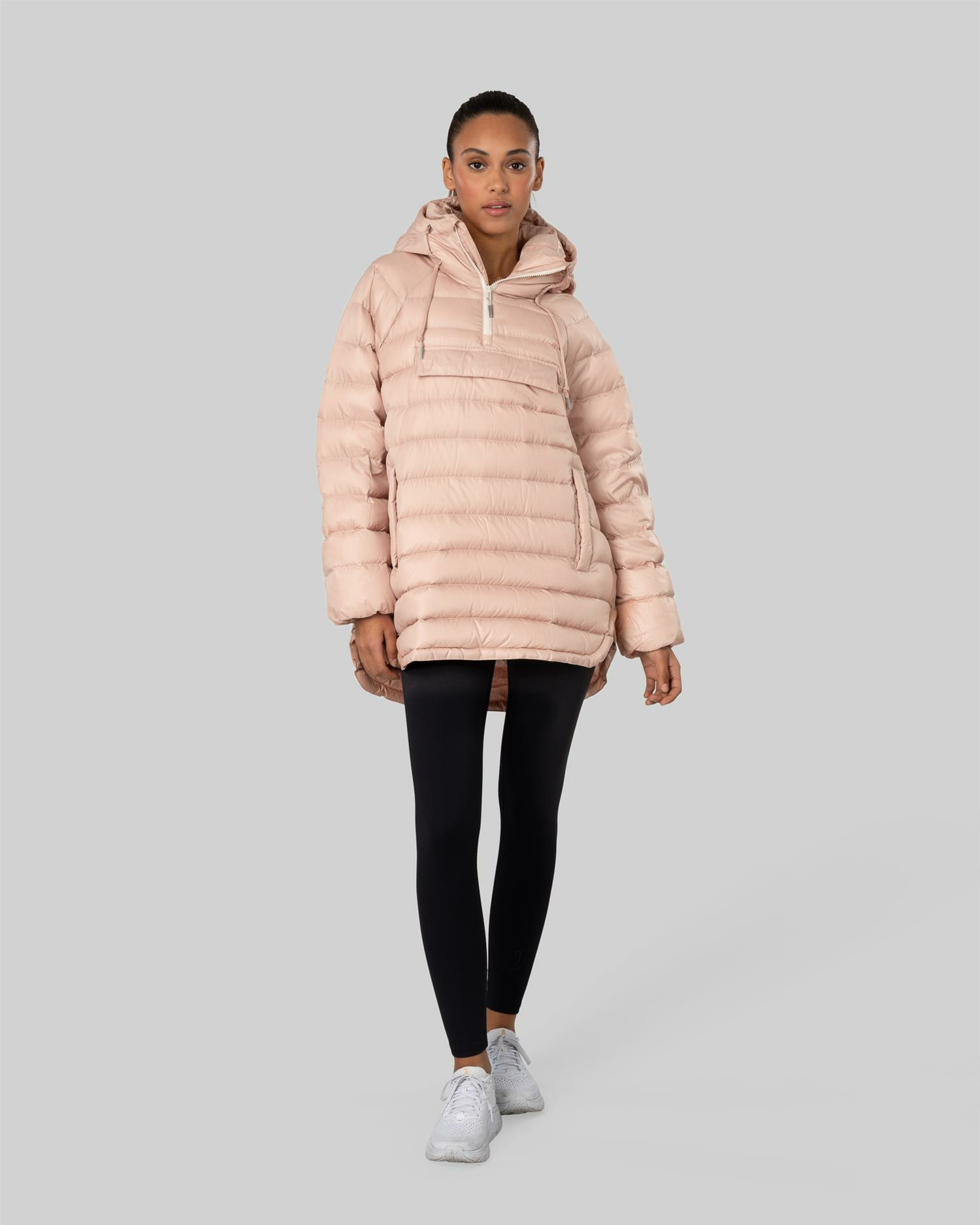Ponchossa on väljä, oversized-mitoitus sekä säädettävä vyö. Materiaali on untuvatiivis, ja ponchossa on eristetty huppu ja kaulus lisälämmön takaamiseksi. Lisäksi ponchossa on joustavat hihansuut, rintatasku sekä kestävä vettä hylkivä käsittely.