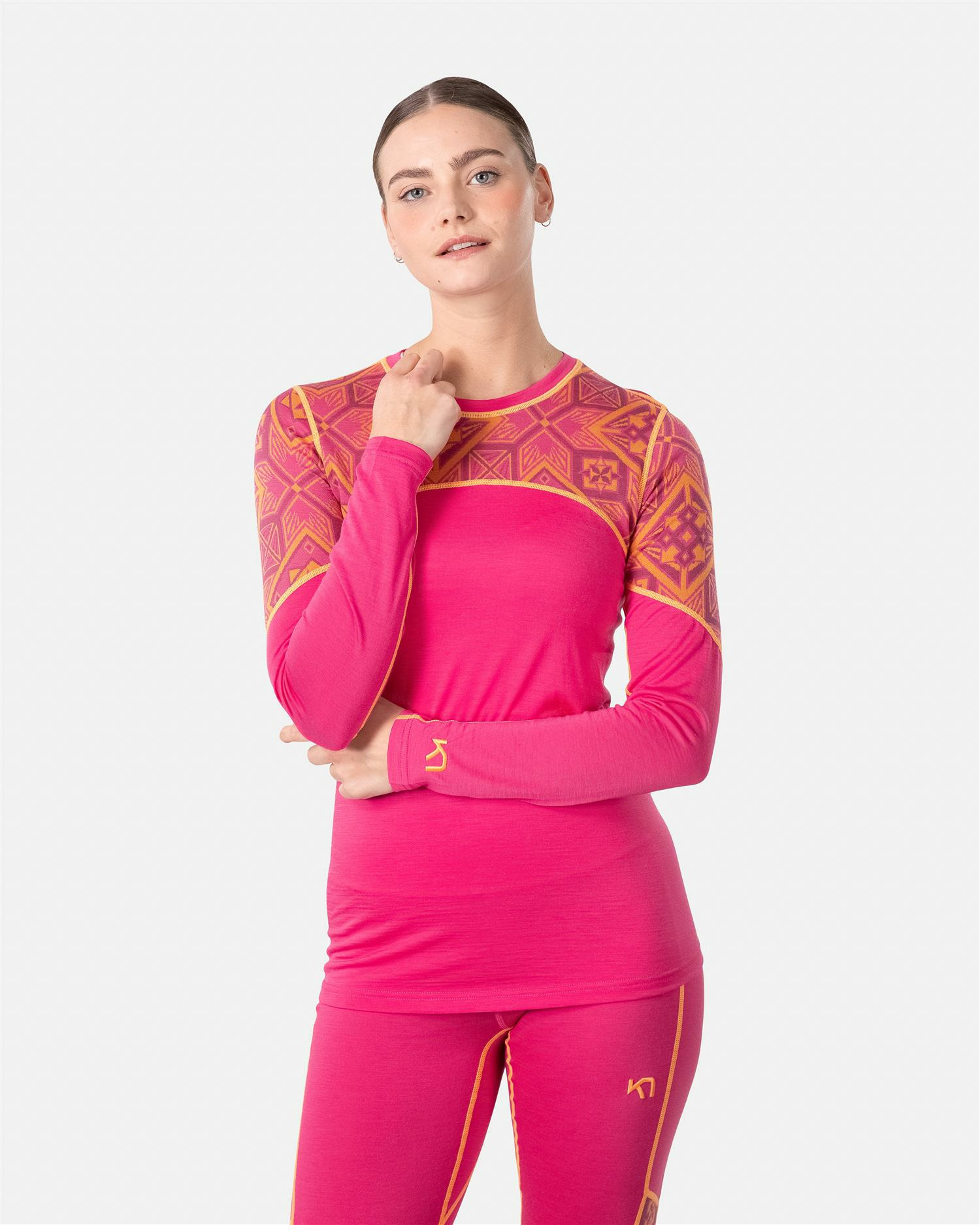 Kevyt Kari Traa Eloise Pitkähiha on slim fit, pyöreäkaulainen Merino/Tencel-sekoite aluskerros. Käytä sitä yksin takin alla leudoilla päivillä tai kerrosta se lisäeristyksen kanssa, kun lämpötila laskee. Jacquard Merino -paneelit on valmistettu vastuullisesti hankitusta, jäljitettävästä villasta, kun taas uusiutuva, kestävästi korjattu Tencel kuivuu nopeasti ja on sileä koskettaa.