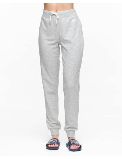 Naisille, jotka rakastavat liikkua, Kari-housut on tehty leikkisyyttä ja kestävyyttä varten. Normaali istuvuus, kapea lahje ja frotee sisäpuolella mukavuutta varten, näissä housuissa on joustava vyötärönyöri, ribatut nilkkakumit ja painettu logo. Sisäsauman pituus on 31 tuumaa.