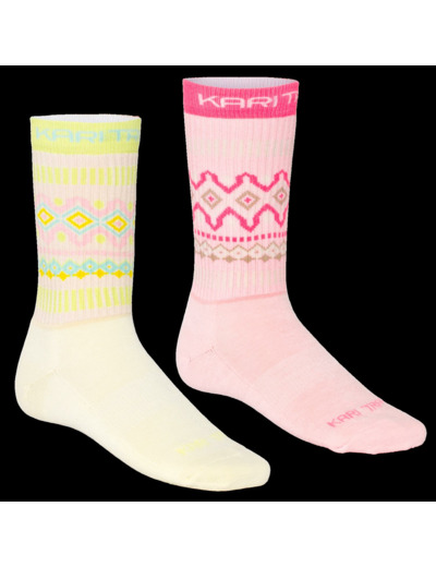 Tutustu mukaviin ja kestäviin Kari Traa Puffin -sukkiin 2-pack. Ajaton crew-pituinen merinovilla/polyesteriseos tarjoaa sinulle lämpöä koko päivän. Saumaton varvas estää hankausta, kun taas ribatut resorit ja vahvistetut kantapäät ja varpaat tarjoavat kestävyyttä mihin tahansa seikkailuun.