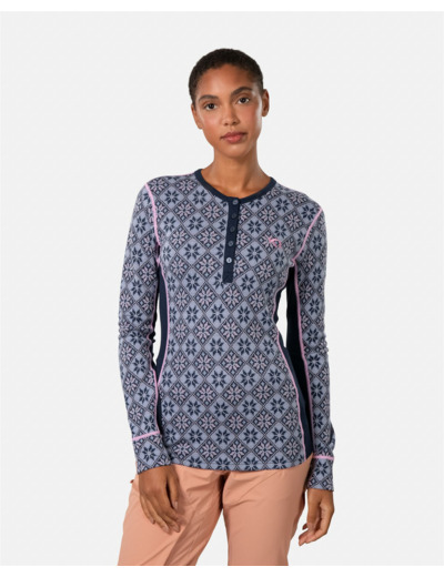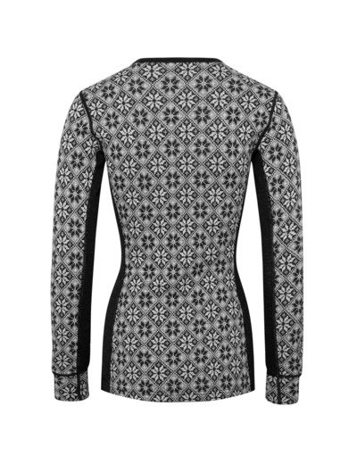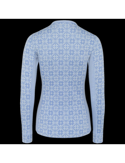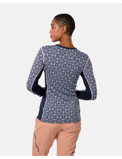 Kari Traa Rose Pitkähiha on keskipainoinen merinovillainen aluskerros, jossa on tyylikäs, naisellinen, pohjoismaista inspiroitunutta kukkakuosia ja slimmi, urheilullinen siluetti. Eettisesti tuotetun villan ja nelisuuntaisen venytyksen yhdistelmä tarjoaa ihonmyötäistä mukavuutta, luonnollista hajunkestävyyttä ja hengittävyyttä. Pyöreä kaula-aukko ja raglan-hihat tekevät kerrospukeutumisesta helppoa.