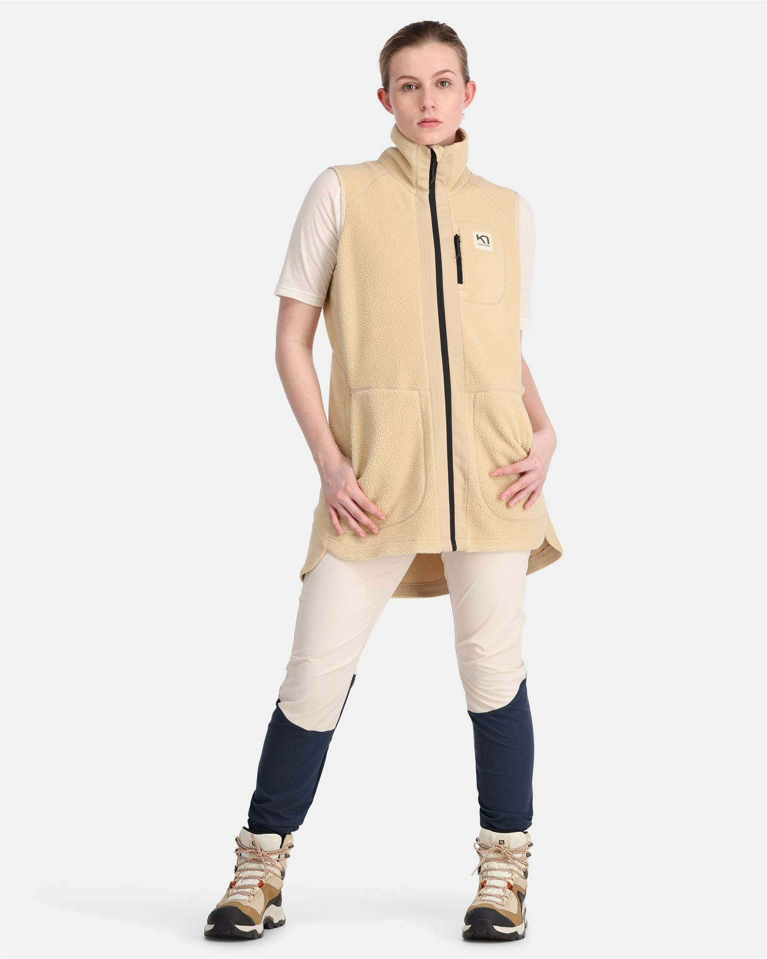 Tutustu uusimpaan tulokkaaseemme, Sanne Pile Vest Longiin. Suunniteltu pitämään sinut lämpimänä tyylillä, tässä liivissä on korkea kaulus, joustava reunus ja litteät saumat sileän viimeistelyn saavuttamiseksi. Turvallinen rintatasku ja käsitaskut tarjoavat runsaasti säilytystilaa, kun taas kaareva ja pidennetty takahalkio lisää leikkisyyttä tähän kestävään kerrospalaan.