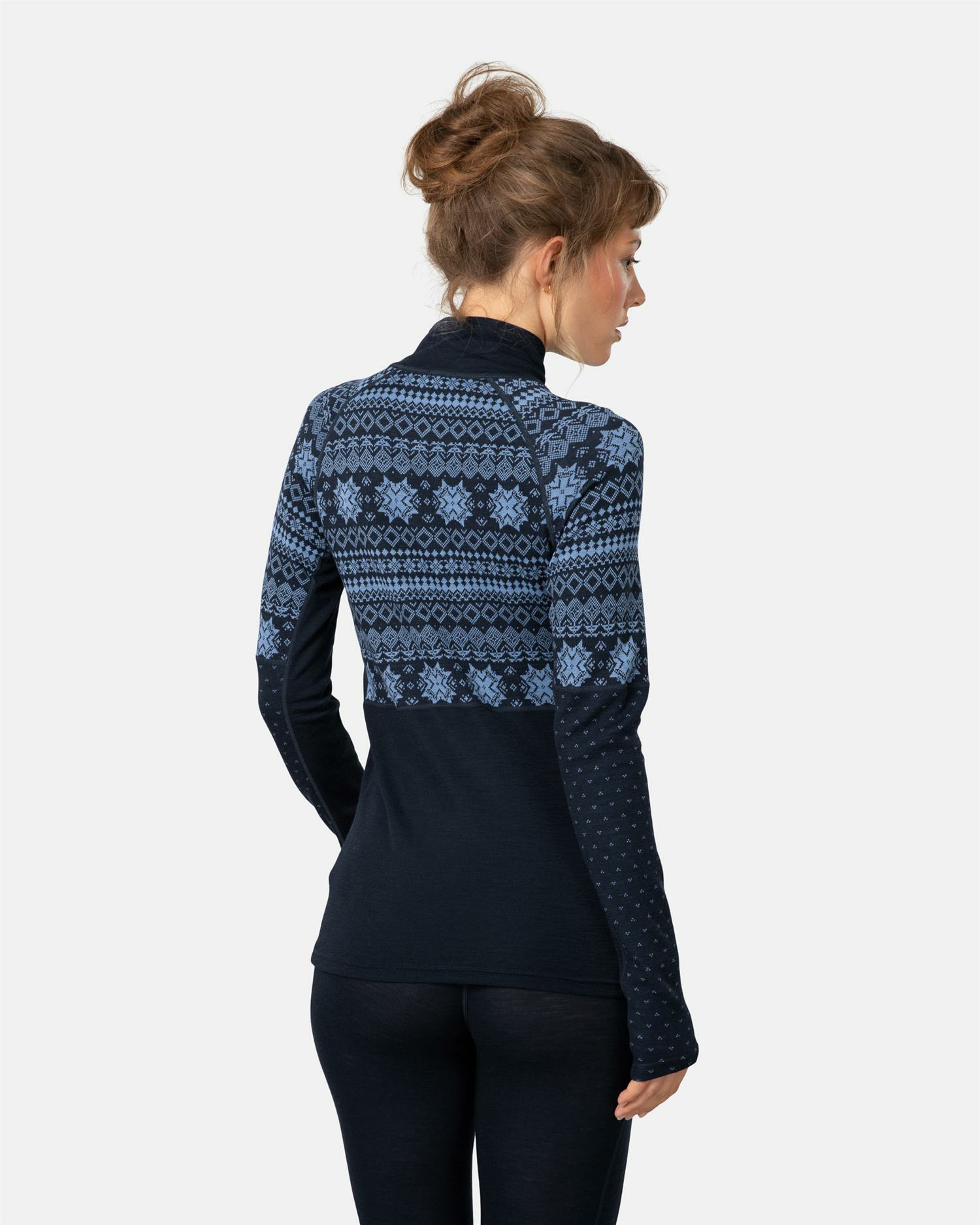 Kari Traa Vilma Half Zip on 100% merinovillasta valmistettu aluskerros, joka pitää sinut lämpimänä jopa märkänä. Sileä ja pehmeä, Vilman Jacquard-neulekuvio tuo mieleen lumisateen, kun taas venyvät kainalopaneelit mahdollistavat esteettömän liikkumisen. Vetoketjukaulus antaa mahdollisuuden säätää vaihtelevaan säähän. Slim fit -mallissa, raglan-hihassa ja korkeassa kauluksessa Vilma on lämmin aluskerros kylmille talvipäiville.