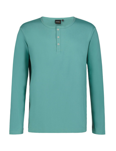 Miesten pitkähihainen trikoopaita puuvillasekoitetta. Vaarinpaita-tyylisessä trikoopaidassa on lyhyt nappilista pääntiessä.