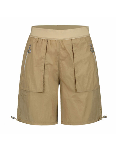 Luhta Annila -urheilushortsit koostuvat kahdesta kerroksesta. Alla on ihonmyötäiset trikooshortsit, jotka joustavat jokaisen liikkeen mukana. Niiden päällä on lyhyemmät shortsit läpikuultavasta materiaalista. Niiden lahkeet ovat säädettävissä kuminauhanyörein. Sivuilta löytyy vetoketjutaskut tärkeille pikkuesineille. Vyötärösauma on toteutettu litteänä flatlock-saumana, mikä lisää shortsien käyttömukavuutta, kun sauma ei hierrä ihoa vasten urheillessa. Joustava vyötärönauha pitää shortsit paikoillaan.