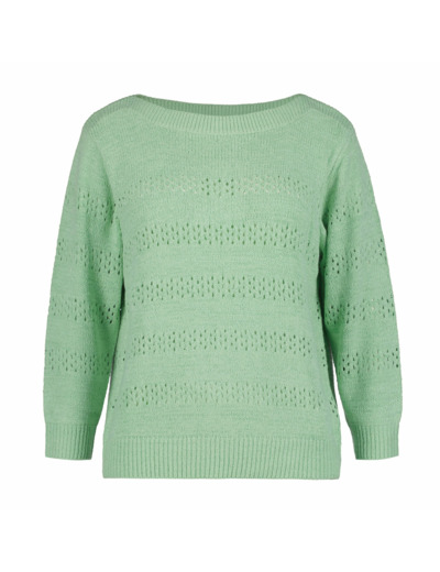 Rennonmallinen pitsikuvioitu neulepusero, jossa on vajaamittaiset hihat. Neuleessa on ribbineulosta pääntiessä, hihansuissa ja helmassa. Materiaalina on pehmeän tuntuinen viskoosisekoitteinen neulos. Neuleen takapituus koossa S on 55 cm.