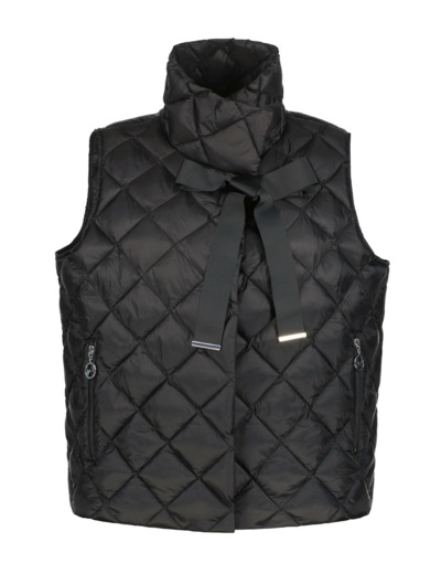 Lyhyt toppaliivi, jossa upeana yksityiskohtana ja kiinnityksenä on kaunis ripsinauha. Liivissä on korkea pystykaulus ja vetoketjutaskut hopeansävyisin Ril's-logovetimin. Muhkea, untuvaa jäljittelevä timanttitikattu toppakangas. Pintamateriaalina on vettähylkivä 100-prosenttinen polyamidi. Täytteenä on laadukas, höyhenetön 3M-polyesteri by Thinsulate, josta 75 % on kierrätettyä. Takapituus on 54 cm koossa 36.
