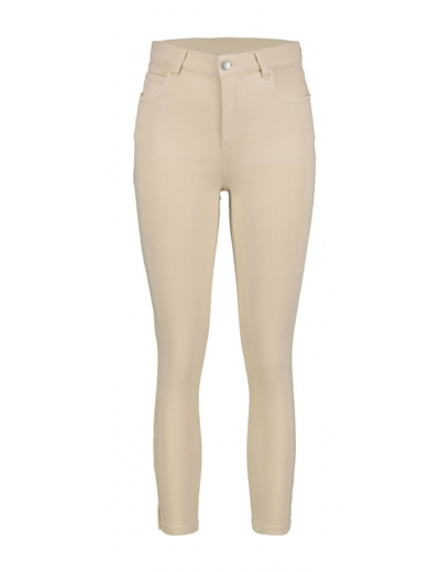 Kapeanmalliset, korkeavyötäröiset farkut vajaamittaisin lahkein. Farkuissa on etu- ja takataskut ja vetoketjukiinnitys. Takana vyötäröllä on keinonahkainen merkkilappu ja lahkeensuissa halkiot. Materiaalina on erittäin joustava puuvillasekoitteinen farkkukangas. Farkun sisäsauman mitta koossa S on 66 cm.