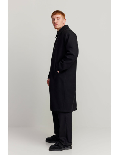 Pitkä takki, jossa on normaali istuvuus ja siisti ilme. Sopii leudompiin talvisäihin ja viimeistelty suurilla napilla.