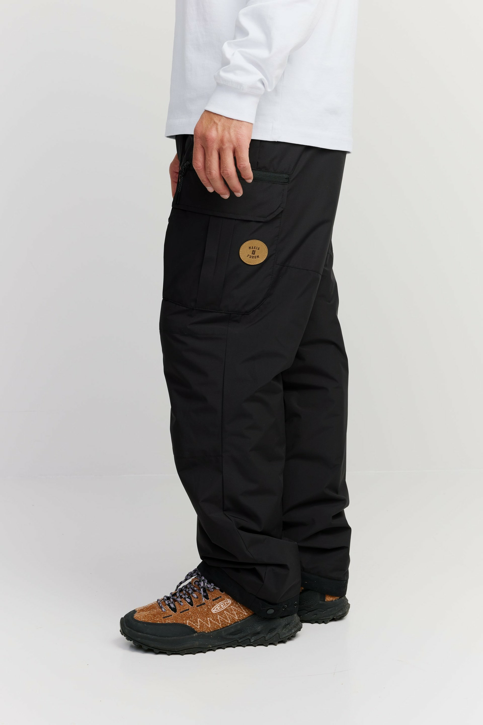Säännöllisesti istuvat housut, joissa on eristyskerros pitämään sinut lämpimänä. Baker-housuissa on runsaasti taskutilaa ja joustava vyötärö, jossa on hihna säätöjä varten. Lahkeiden aukot on varustettu nappisäädöllä optimaalisen istuvuuden löytämiseksi.