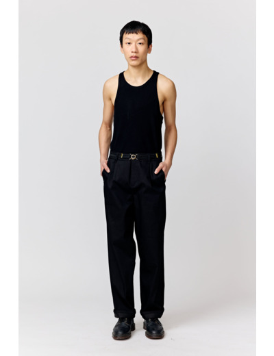 Säännöllisesti istuvat housut suoralinjaisilla lahkeilla ja normaalilla vyötäröllä. Beacon-housut on valmistettu gabardiinikankaasta ja niissä on laskokset edessä.