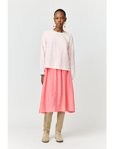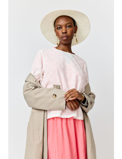 Vyötärölle ulottuva paita, jossa on normaali istuvuus. Viimeistelty brodeeratulla kuviolla.