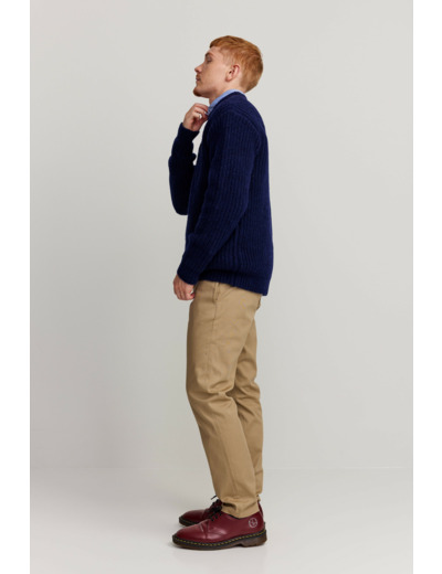 Säännöllisesti istuva neule, joka on valmistettu villan, nailonin ja lycran sekoituksesta.