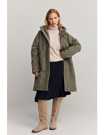 Polvipituinen takki, jossa on normaali istuvuus. Kaija-takissa on huppu, jossa on taitettava lippa suojaksi, ja 3000 mm vedenpitävyys, joka pitää kevyet sadekuurot loitolla.