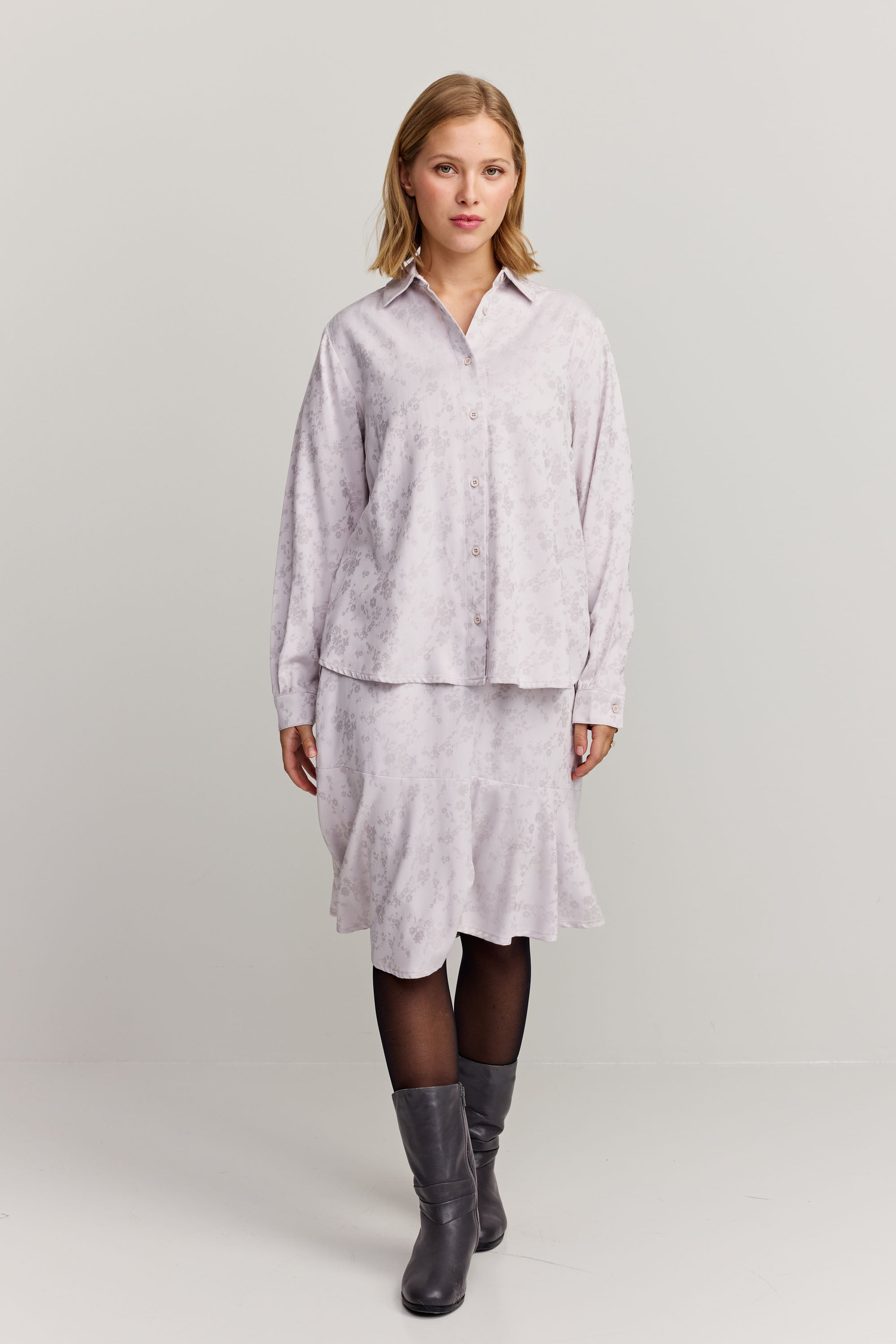 A classic button-up shirt with a regular fit. The Maisie Shirt features a rounded hem that’s slightly longer on the back. Made from Ecovero™ viscose and polyester.