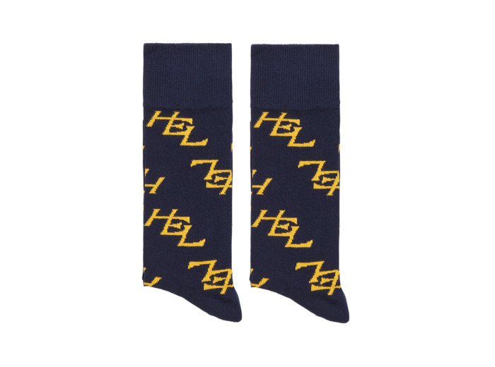Fully patterned socks with the HEL print. The mixture of cotton and polyamide brings comfort, breathability, and durability.