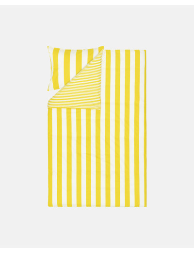Puuvillaperkaalista valmistetussa pussilakanasetissä on Korsi ja Ujo -kuosit. Setti sisältää yhden pussilakanan koossa 150x210 cm sekä yhden tyynyliinan koossa 50x60 cm. Pussilakanan toisella puolella on leveämpi Korsi-kuosi, ja toisella puolella kapeampaa raitaa oleva Ujo-kuosi. Tyynyliinan molemmat puolet ovat Korsi-kuosia.