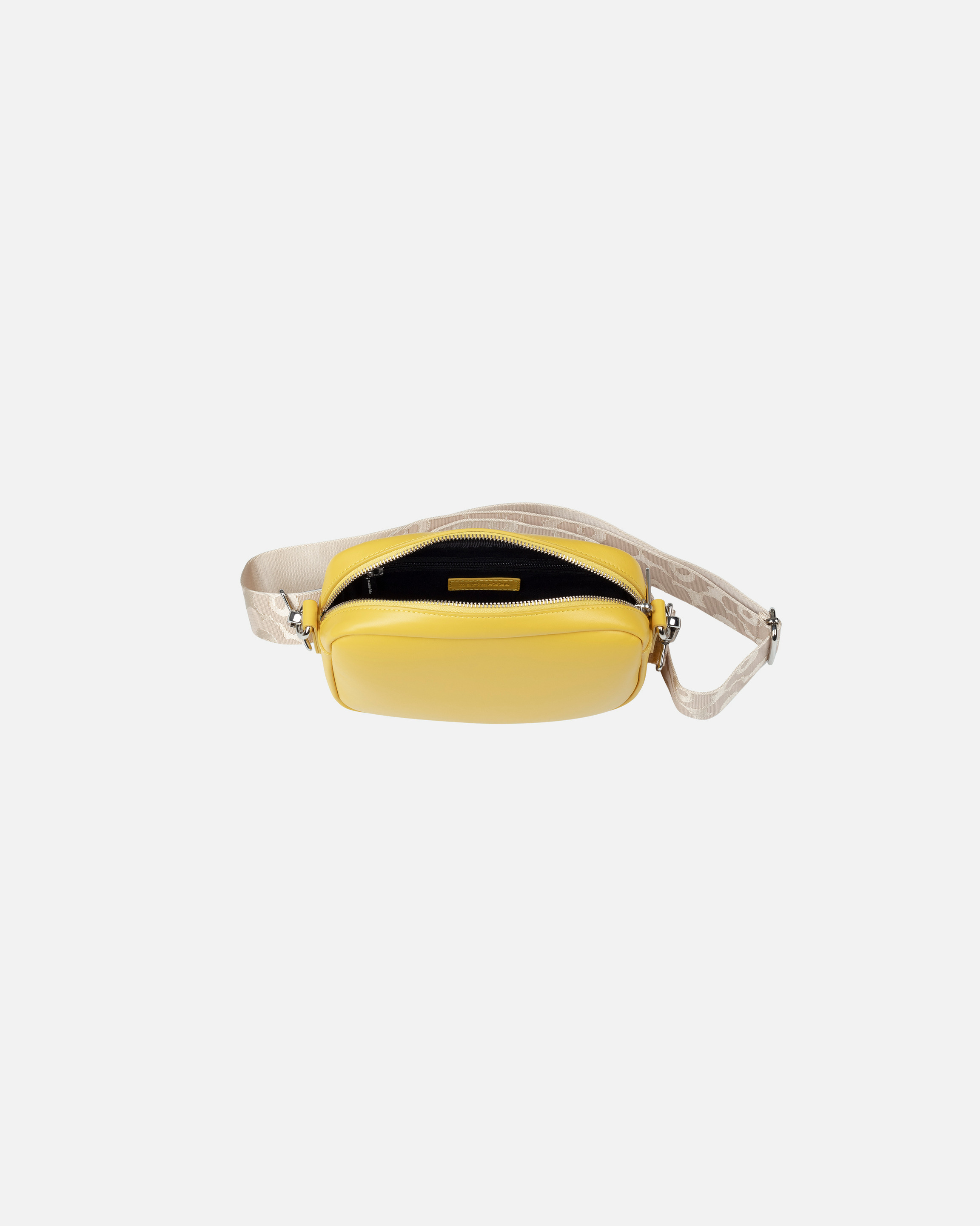 Soft Gratha -olkalaukku on valmistettu pehmeästä nappanahasta, joka patinoituu kauniisti käytössä. Laukussa on vetoketjusuljenta ja kierrätetystä polyesterista valmistettu säädettävä ja irrotettava olkahihna, jossa on jacquard-kudottu Unikko-kuosi. Sisäpuolella on vetoketjutasku.