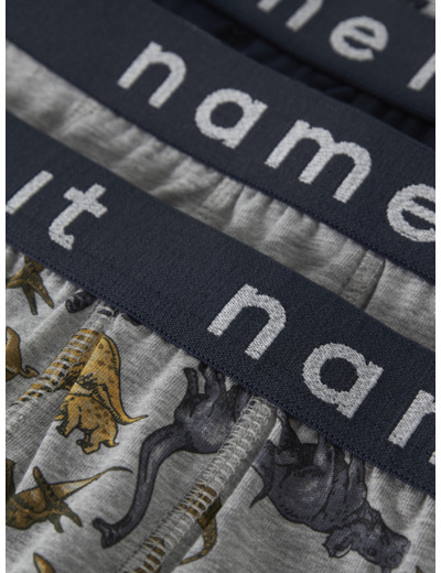 Mukavat ja trendikkäät bokserit pienille seikkailijoille. Name It -merkin NKMPBOXER 3P Grey Melange Dino Inj yhdistää käytännöllisyyden ja hauskan designin.