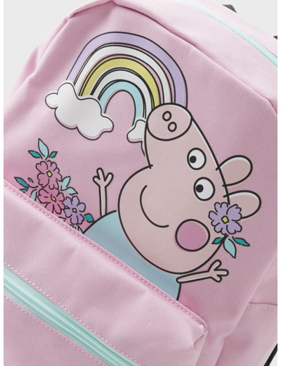 Peppa Pig on neljävuotias, hieman määrätietoinen pikkupossu, joka rakastaa hyppiä mutalätäköissä ja viettää aikaa perheensä kanssa. Tämä reppu tuo iloa arkeen ja kannustaa lasta huolehtimaan omista tavaroistaan. Peppa Pig -kuviointi on pehmeästi kohokuvioitu, mikä tekee repusta miellyttävän tuntuisen ja kestävän.