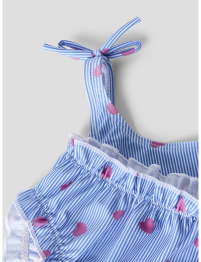 Anna lapsesi loistaa kesän kuumimpana päivänä NMFPZANNE BIKINI BOX -bikini-setillä. Trendikäs kuosi ja suloiset röyhelöt tekevät uimapuvusta täydellisen valinnan rantaleikkeihin ja aurinkoisille retkille.