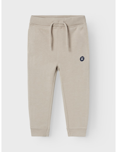 Materiaali on harjattua collegekangasta, joka tarjoaa pehmeän sisäpinnan ja kestävyyttä. Vyötärö on säädettävissä nyörillä, ja housuissa on tyylikäs merkki edustamassa Name It -brändiä. Leikkaus on regular fit, joka istuu mukavasti ilman kiristämistä.