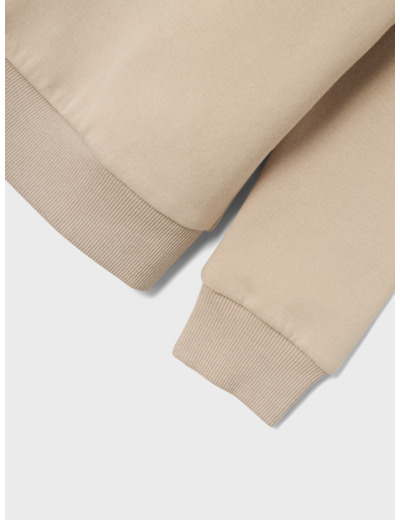 Tuotteen tekniset tiedot: Regular Fit -leikkaus, pyöreä kaulus, pitkät hihat, ribbineulotut hihansuut ja helma. Materiaali on harjattua collegekangasta, joka on pehmeä sisältä.