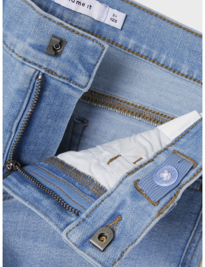 Denim-kangas on kestävä ja tarjoaa ainutlaatuisen ilmeen hienovaraisilla kulutuksilla. Säädettävä vyötärö takaa täydellisen istuvuuden ja liikkumisen vapauden koko päivän ajan. Klassinen kiinnitys napilla ja vetoketjulla tekee käytöstä helppoa ja nopeaa.