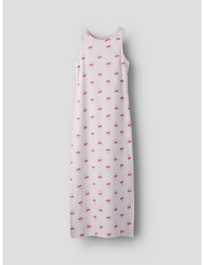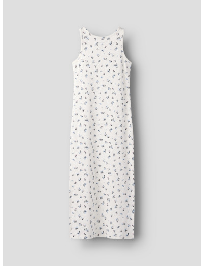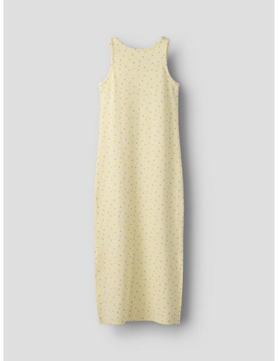 Tuotteen tekniset tiedot: mekko on hihaton, pyöreällä pääntiellä ja slim fit -mallinen. Materiaali on ribbineulosta, jossa on toistuva printti koko pinnalla.