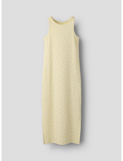 Ribbineulos tuo mekkoon pystysuuntaisen raidallisen kuvion ja joustavuutta, joka takaa miellyttävän istuvuuden koko päivän ajan. Pyöreä pääntie ja hihaton malli tekevät mekosta monikäyttöisen, olipa kyseessä arki tai juhla. Toistuva printti koko pinnalla lisää persoonallisuutta ilman liiallista koristelua.