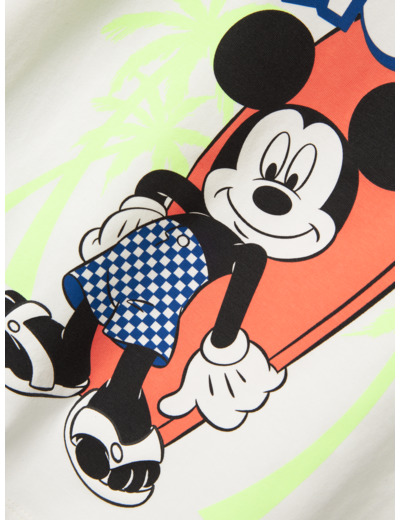 Kevyt ja joustava jersey-kangas tuntuu pehmeältä ihoa vasten ja antaa vapauden liikkua. Mickey Mouse -kuva on toteutettu kohopainatuksella, joka luo kolmiulotteisen ja elävän ilmeen, sekä pehmeällä kumipainatuksella, joka lisää käyttömukavuutta. Standard Fit -leikkaus takaa hyvän istuvuuden ilman kiristystä.
