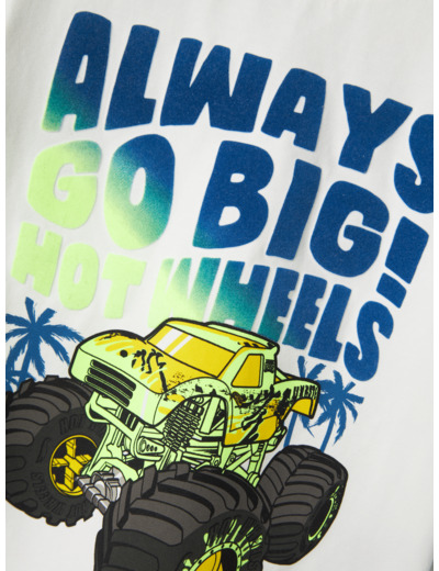 Kevyt ja joustava jersey-kangas tuntuu pehmeältä ihoa vasten ja antaa vapauden liikkua. Hot Wheels -aiheinen kumipainatus on miellyttävä koskettaa ja kestää käytössä, tehden paidasta lapsen suosikin niin leikeissä kuin vapaa-ajalla.