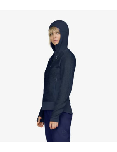 Optimaalisen liikkuvuuden varmistamiseksi ja materiaalimäärän vähentämiseksi strategisissa kohdissa olemme lisänneet joustavampaa Polartec® Power Grid 139 g/m² -materiaalia (97 % polyesteriä, 3 % elastaania) kainaloihin, sivuille sekä huppuun.