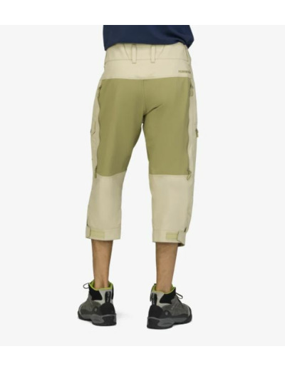 Päämateriaali on canvas-rakenteinen kangas: 60 % luomupuuvillaa ja 40 % kierrätettyä polyesteriä (295 g/m²), CO DWR -käsittelyllä. Tämä klassinen canvas-materiaali paranee ja pehmenee käytön myötä. Istuinosassa ja polvissa käytämme vahvaa, kaksinkertaisesti kudottua flex1-materiaalia, joka joustaa kaikkiin suuntiin. Koostumus: 50 % kierrätettyä polyamidia, 43 % polyesteriä ja 7 % elastaania (275 g/m²), C0 DWR -käsittelyllä.