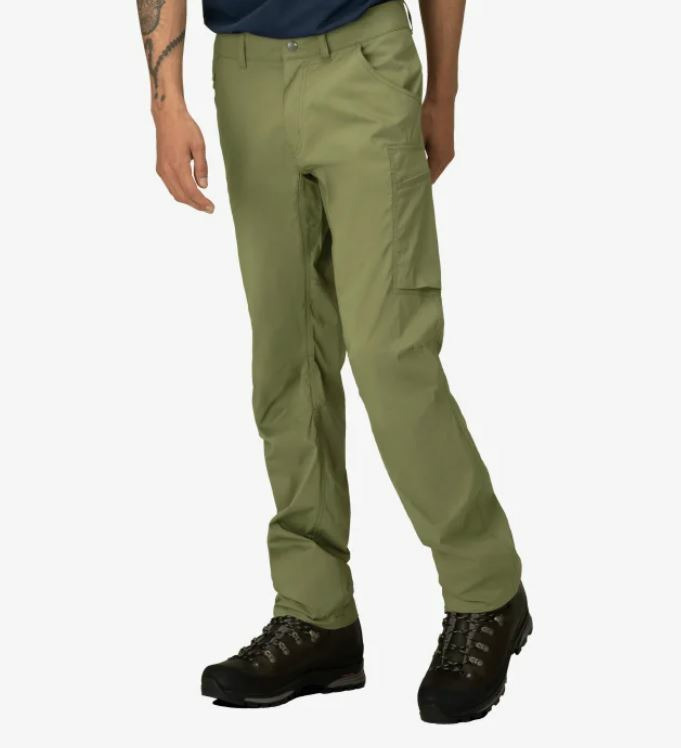 Kangas on 65 % luomupuuvillaa / 30 % nailonia / 5 % elastaania. Laadukas kierrätetty polyesteri tekee kankaasta kevyemmän, kestävämmän ja nopeammin kuivuvan. Lisäksi siinä on PFC-vapaa DWR-käsittely, joka parantaa vedenhylkivyyttä.