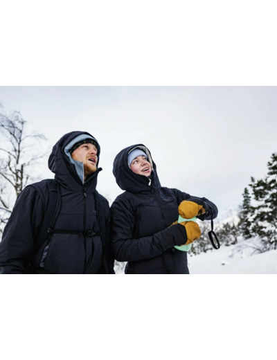 The main fabric composition is a Bluesign approved 69% recycled nylon/19% recycled polyester/12% elastane (205 g/m2) double weave fabric. On the palm, fingers and side of the thumb, we’ve used 100% goat leather. The interior lining is a 100% recycled brushed polyester (130 g/m2). The insulation is a recycled thermo200 (200g/m2) in the back of hand and a thermo100 (100g/m2) in the palm.